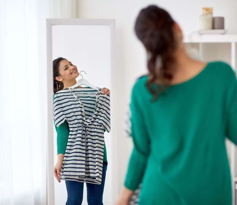 We search 1000’s of garments every month to show her clothes available to buy that will suit her unique body shape